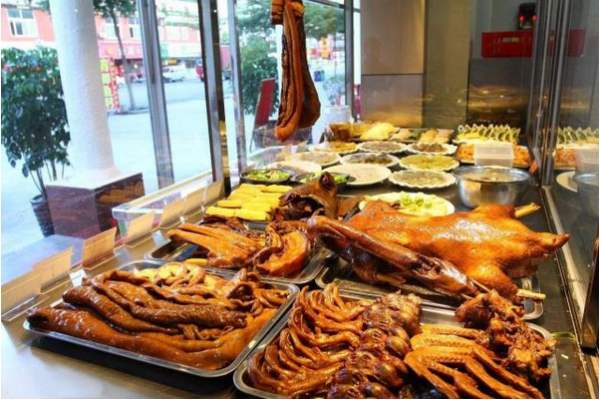 第六個秘訣在于特色鹵肉的糖色。糖色上得好,顧客光看看就很有食欲。糖色上得不好,要么看上去暗淡得像賣了很久的陳貨,要么就是讓人覺得是加了增色劑,不真實,讓人不敢吃。