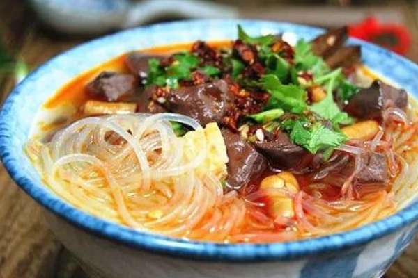 8、鴨血不需要炒,粉絲煮一下加入鴨血和幾塊鴨肉即可。