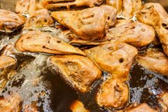 (9)造型好后的鴨外形酷似琵琶,因而得名,把淋過皮水的鴨掛在風口處吹干。
