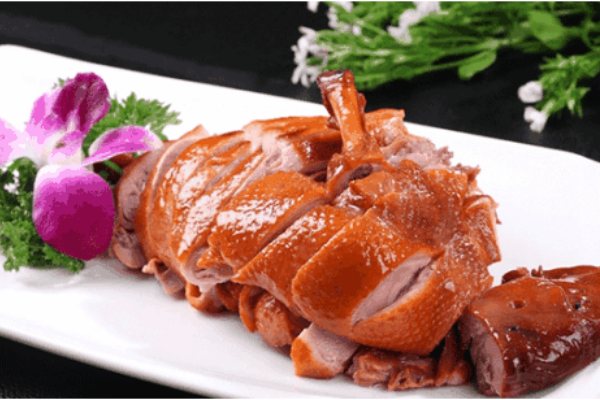 (5)食用前,將鴨子斬件,整齊地?cái)[入盤中,還可以配上鴨下雜之類的鹵味料。吃時(shí)可配炒好的辣椒醬、香醋、少許原鹵水、青椒蓉泥味碟,食客可依據(jù)自己的口味選用。