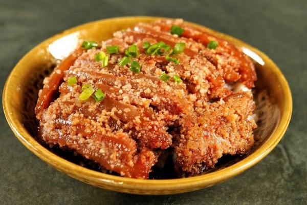 1、老抽+蜂蜜刷在肉皮表面,經過油炸后,色澤金黃透亮、晶瑩剔透。