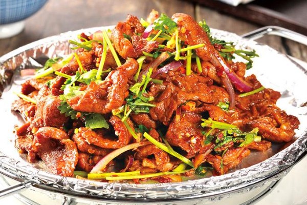 種烤肉方法。相傳元太祖成吉思汗善食此品,在率兵馳騁天下時傳至中亞、南俄,風(fēng)靡世界。在日本等國家民間迄今仍很流行。所以,稱之為成吉思汗鐵板燒。鐵板烤肉制作獨特,食法別致,烤具方便攜帶,很適應(yīng)飯店經(jīng)營和旅行、野游外餐。選料以羊肉為佳,其次可用牛.豬、雞、魚、蝦肉,切成適度薄片調(diào)制后由食者在鐵板上烤熟,蘸已備芝麻醬、辣椒、芥菜.蔥、姜末、蒜泥、鹵蝦油等調(diào)配的佐料汁食用。肉味鮮香可口,別具一格。