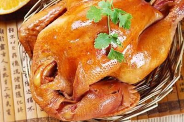 4、煮雞,已炸好的雞順序亞擺在鍋內,對入陳年老湯和化開的鹽水后再放入砂仁等8 味配料,用竹第壓住雞體,使老湯浸住最上一層雞體的一半。先用大火將湯燒開,然后把 12~18 克火硝放入雞湯沸處化。將湯煮開后再用文火燜煮直到煮熟為止。從開鍋算起,一般須者3~5 個小時。攜出時要注意保持造型美觀。