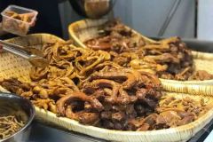 分批下鍋在開水中煮,五花肉煮10分鐘左右,排骨肉煮15分鐘左右,煮好后撈起來用清水沖洗干凈,去掉油沫和臟污東西,然后將鍋里的白湯撇去浮油,全部舀出。再在鍋內放拆骨的豬頭肉6塊(豬臉4塊、下巴肉2塊,主要起襯墊作用,防止原料貼鍋焦煳),放入桂皮100克,八角100克,蔥500克,生姜100克,在豬頭肉上面先放五花肉,后放排骨肉。如果有排骨碎肉可裝入小竹籃中,放在鍋中間。最后倒入適量白煮肉湯,用大火煮制1小時左右。