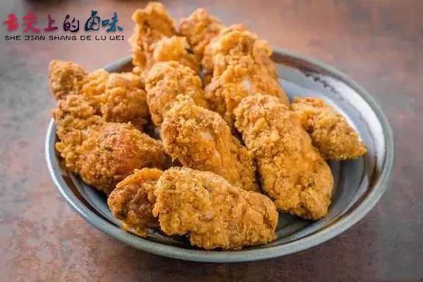 一、裹淀粉糊制作的炸雞,其外皮色澤金黃、口感酥脆,但不耐放、易變軟、韌性不足。