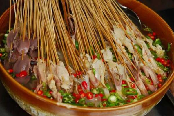 缽缽雞有上百年的歷史,起源于四川樂山一帶,是當?shù)氐膫鹘y(tǒng)佳肴,缽缽其實就是瓦罐, 缽內(nèi)盛放配以麻辣為主的佐料,(有的根據(jù)當?shù)乜谖兜牟煌?,添加了藤椒油,風味有所不同,)菜品在特珠殊加工后用簽串制,晾冷浸于各種口味的佐料中,食用時自取自食,除味道悠長外更添情趣盎然。下面《舌尖鹵味》小編和大家分享下缽缽雞的湯料配方,希望對大家有所幫助!