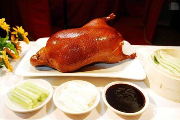 掛爐烤鴨是依靠熱力的反射作用,即火苗發出熱力由爐門上壁射到爐項,將頂壁烤熱后,再反射到鴨身的結果,不完全領帶火苗的直接燎烤。爐溫要穩定在230℃至250℃之間,避免過高或過低。過高,會命名鴨皮收縮,兩肩發黑;過低,會使鴨胸脯出皺褶??局茣r間要根據季節不同和鴨的大小、數量多少而定,不能地長或過短。一般說,冬季烤1只2000克的鴨子約45分鐘,夏季30分鐘??局茣r,注意不要使胸脯直接對著火烤,因此處肉嫩容易烤焦,甚至會發生裂縫起泡現象。兩腿肉厚,最不易熟,烤時間長一些。鴨襠不易上色,須用人工來挑撩,方法是:將鴨挑起,在火焰上微微晃動幾下,把鴨襠燎上色,要注意,哪里缺色就燎哪里,不能影響其它部位,特別是胸脯肉。
