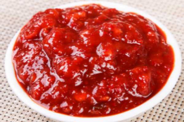 做法新鮮的朝天椒,配幾只紅尖椒(愛吃辣的人可以全用朝天椒),500克番茄,一塊姜,兩頭大蒜。以上各樣分別放攪拌機攪成糊狀。炒鍋放水一小碗,用中火煮,各種糊下鍋中,熬醬(蒜蓉留一半最后放)邊熬邊加鹽、糖(少許),米醋小半瓶。切記要不停地用勺攪拌以防粘鍋,由稀轉稠就可以關火了,然后下點味精,再把剩下的蒜蓉倒進去,涼后裝瓶。