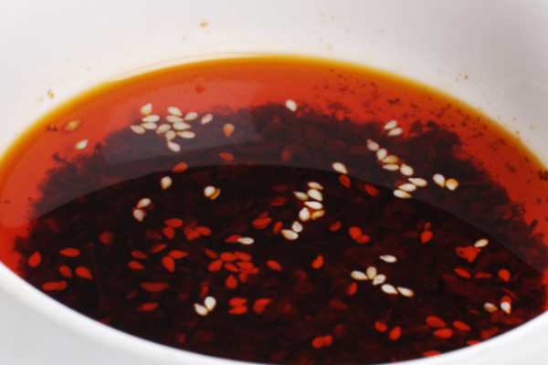 1、煉油:一斤干辣椒用四斤菜籽油(比例1:4),凈鍋中倒入菜籽油,燒至八成熱(240度)關火,靜置冷卻,再重新加熱至四成熱(120度)放入洋蔥250克、小蔥150克、姜片100克炸至焦黃撈出,關火,這一步是煉油,除去菜籽油中的雜質和異味。